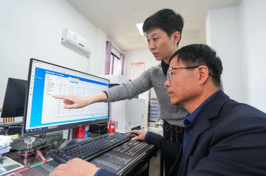 工作人员指导使用农村集体“三资”监管系统。原浩 摄