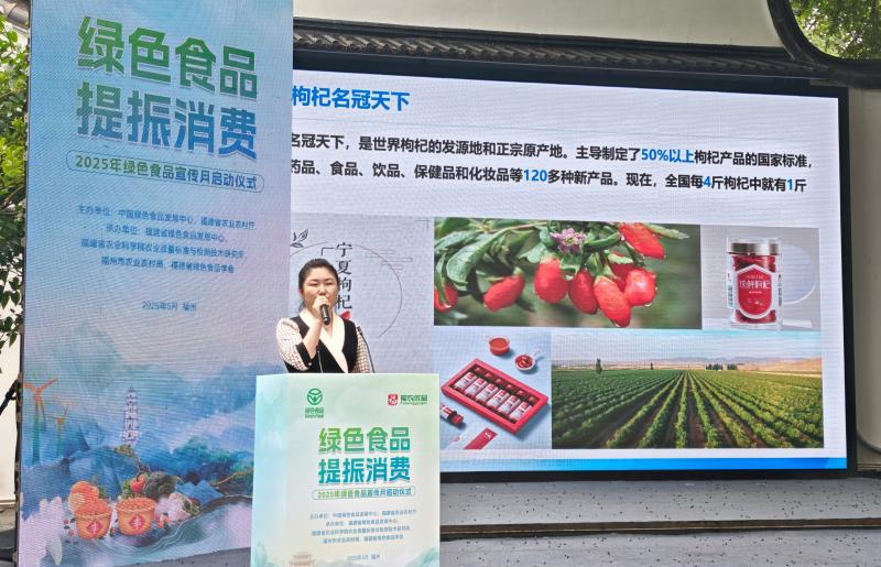 近年来福建省绿色食品事业发展态势良好,全省绿色食品数量已突破2000个,并持续稳定发展。在现场的绿色优质农产品推介环节中,来自宁夏的绿色食品代表率先登场,分享了闽宁协作下宁夏绿色食品产业的蓬勃发展成果,宁夏还组团参加现场展销活动,枸杞、滩羊肉等特色农产品承载着跨越山海的协作情谊;建宁县代表则以 “莲乡” 为名片,展示了莲子、水果等绿色优质农产品,凭借得天独厚的生态环境与严苛生产标准,赢得现场阵阵赞叹;绿色食品企业代表闽榕茉莉花茶凭借百年传承工艺与卓越绿色品质,体现绿色匠心精神。