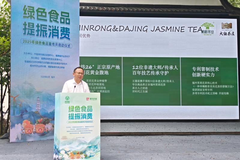 东南网5月27日报道 “绿色食品 提振消费——2025年绿色食品宣传月启动仪式”于5月26日在福州西湖金鳞小苑举行。本次活动由中国绿色食品发展中心、福建省农业农村厅主办;福建省绿色食品发展中心、福建省农业科学院农业质量标准与检测技术研究所、福州市农业农村局、福建省绿色食品学会共同承办,通过“政府搭台、企业唱戏、全民参与”的创新模式,吸引了近百家企业踊跃参与,现场通过 12 个平台同步直播,打造了一场集品牌展示、产业推介、文化融合于一体的绿色农业盛会。