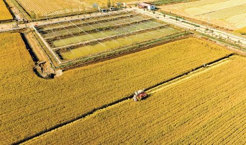 今年,菜吴村种粮大户吴振邦的600亩稻田里,满是“一田多收”的热闹景象:沉甸甸的稻穗即将等待开镰,工人正忙着用网兜捞起肥硕的黄河泥鳅,他还将罗非鱼苗的投放量提升至500尾。