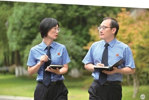 ②9月1日,重庆检察未成年人保护工作团队代表孙文静(左)和吴波在讨论案件。 刘力 摄 新华社发