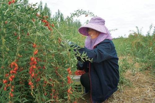 青海可可西里保健食品有限公司枸杞种植基地里,农户正采摘枸杞。 受访者供图