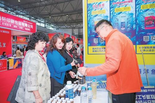 在肥料“双交会”现场,工作人员正在介绍绿色叶面肥产品。 农民日报·中国农网见习记者 庞维双 摄