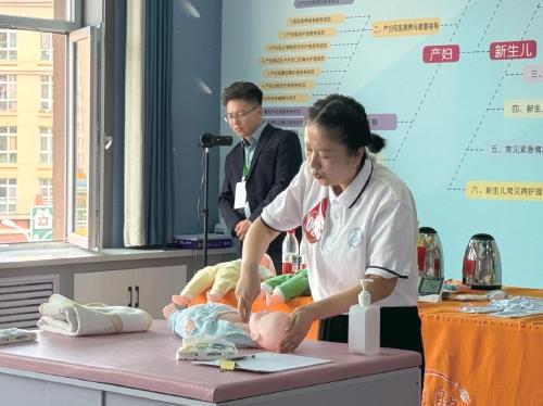 图为参赛选手在母婴护理员项目中展示护理技巧。