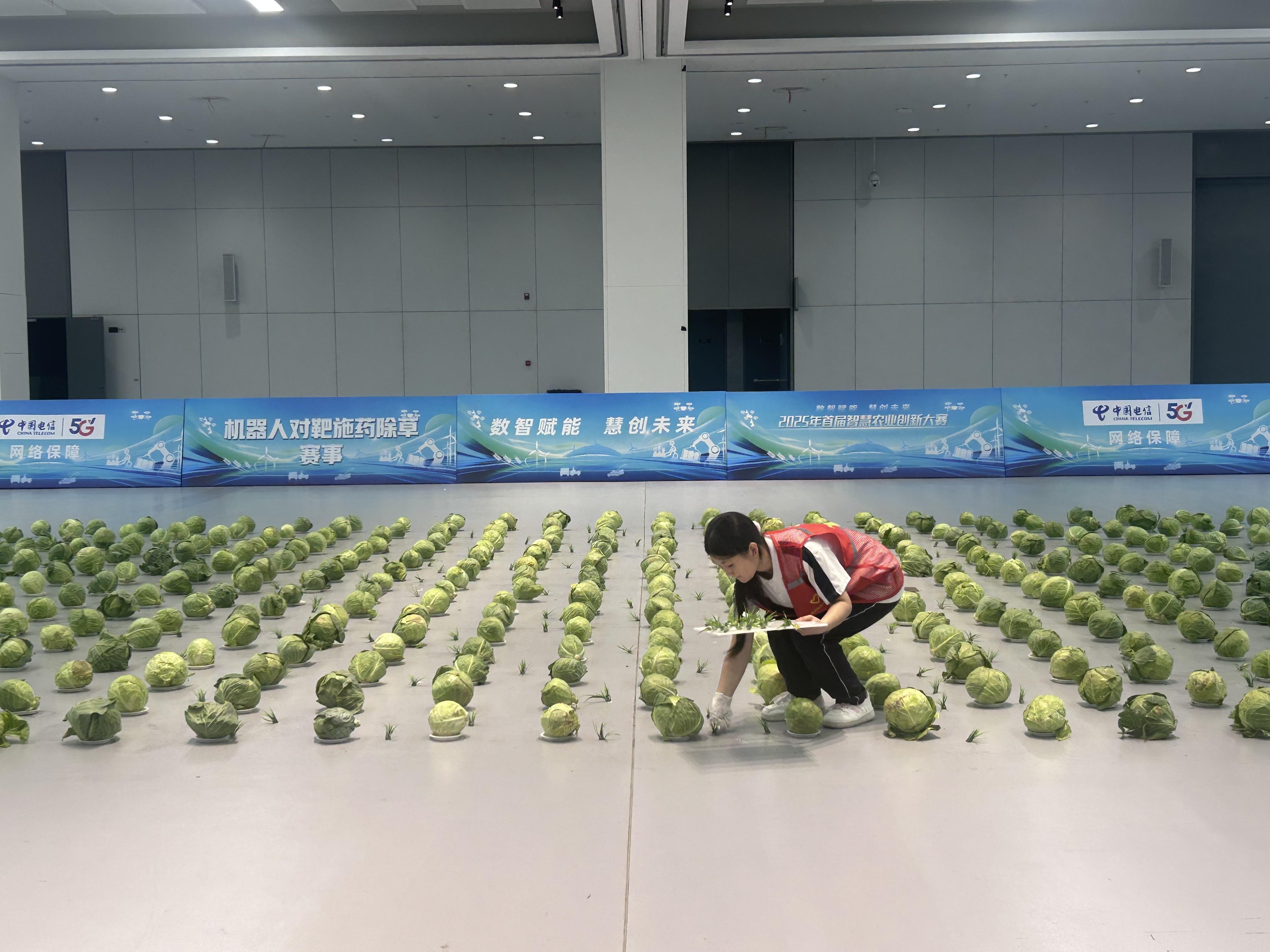“为评估机器人作业效果,我们会在杂草上随机粘贴100张水敏纸,用于检测药剂是否精准喷施。同时,在卷心菜和地面等不应喷药的位置也随机放有100张水敏纸,用于统计误喷情况。除喷药准确性外,作业速度与作物损伤情况也是重要评分维度。”对靶施药除草机器人主裁判、江苏大学农业工程学院副院长刘继展告诉记者。