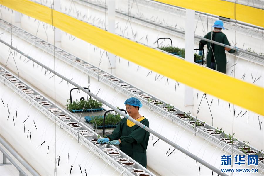 近日,为赶农时,安徽省淮北市烈山区古饶智慧农业产业园组织工人对170亩小番茄进行种植,确保供应市场。近年来,当地大力发展高品质设施蔬菜种植产业,运用智能化农业管理系统、5G网络,实现全流程精准管控。种植的小番茄通过智能水肥一体化栽培等技术,精确设定施肥量和频率,有效避免了病虫害,提升了口感和品质,产量比传统种植提高了5至10倍。同时以园区为依托,为周边种植“新农人”提供种苗、技术服务和管理培训,带动合作社、家庭农场共同发展,做大做强富民产业。新华网发(李鑫 刘小龙 摄)