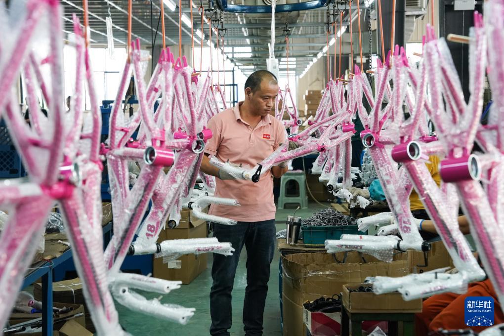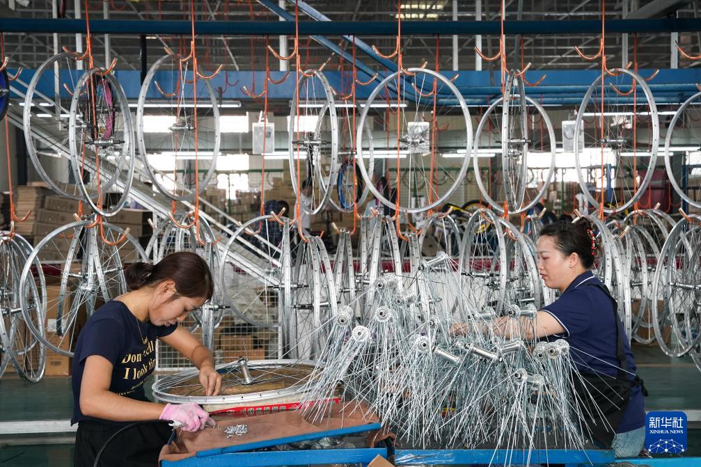 10月10日,工人在五河县一家自行车生产企业内工作。