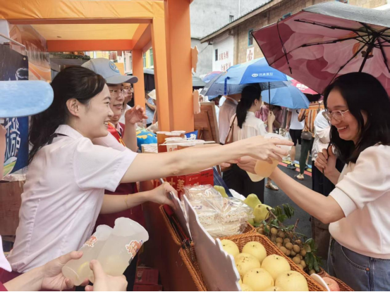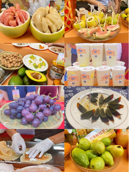 现场还有古法烘焙的莆田大桂圆、丝细易熟的兴化米粉、枇杷花茶、皮蛋、仙游特色枫亭糕.....以及芭乐、蜜桔、杨桃等来自全省各地市的“福农优品”,一道道承载着“家乡味道”的特产整齐摆放在展台上供人们免费品尝。