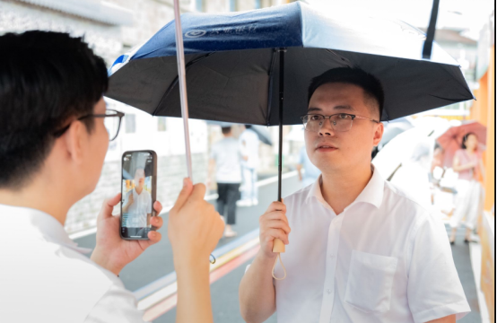 主播们在文昌阁直播 林晓烨 摄