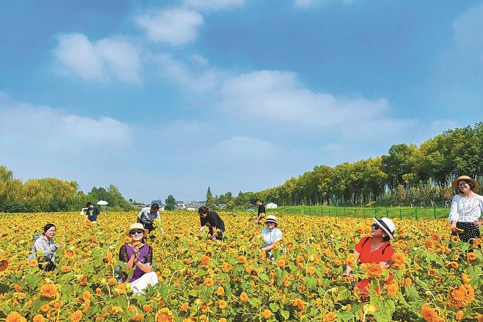 金秋时节,走进扬州市邗江区瓜洲镇瓜洲村,百亩葵园里花浪翻滚,金色花盘迎风摇曳。“国庆期间,我们‘烤乐营’每天都坐满了客人,日营业额稳定在2万元以上。”瓜洲村乡村主理人朱媛难掩喜悦。