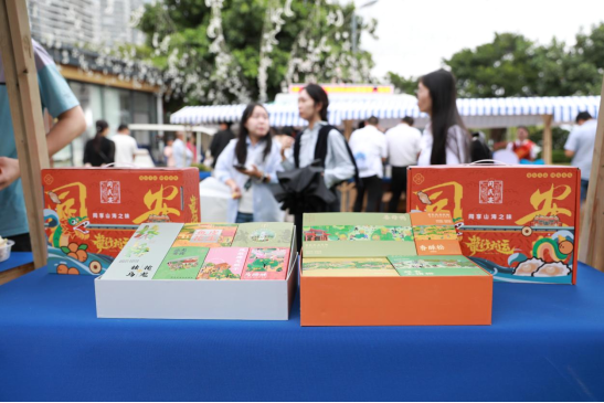 蔗内米粉、云洋面线、三秀山山药、莲花高山茶、褒美进士芋等特色农产品琳琅满目,“大家看这里产品的包装是不是很有特色,这些是我们的省级非遗同安农民画,非常有本土风味。”海峡网主播仇浩向观看直播的网友们展示市集上的产品。