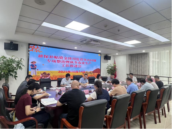 10月14日,市农业农村局召开耕保补贴资金使用监管突出问题专项整治暨秋冬农业生产工作推进会,局党组成员、三级调研员张宏彦主持,驻局纪检监察组四级调研员倪珠梅、局有关处站负责人和各县(市)区农业农村局分管领导参加。