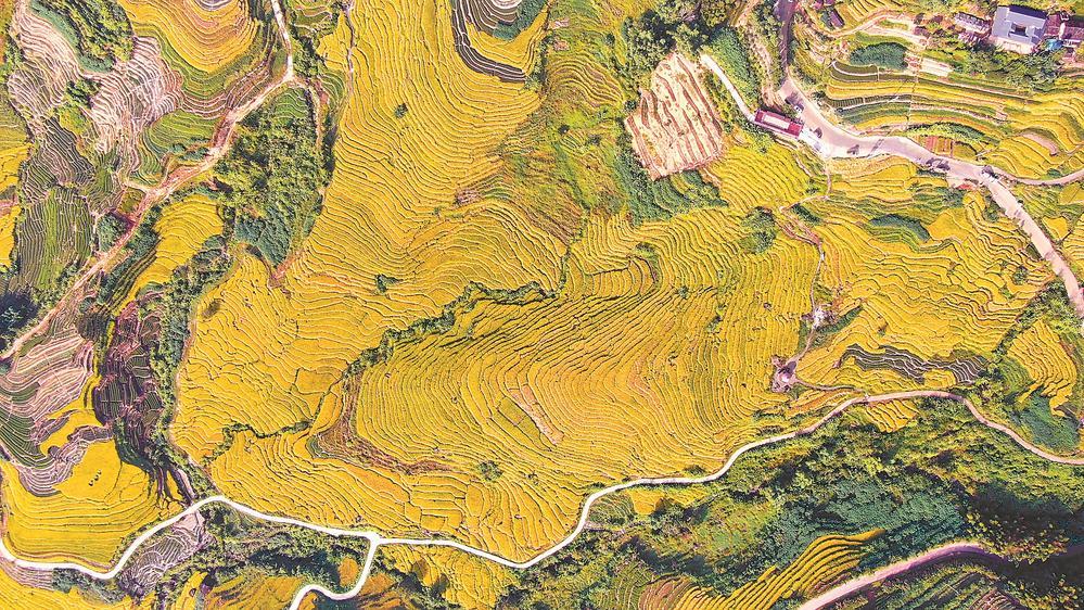 16日,华安县湖林乡石井村千亩梯田披“金甲”。林国桦唐小玲摄