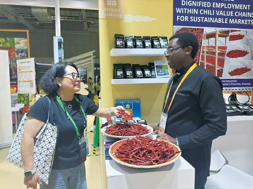 “大市场”“大机遇”是各国展商反复提及的关键词。“中国作为全球最大的辣椒市场之一,对海外高辣品种仍有需求,这正是我们的机会。我们每年辣椒产量有1000多吨,其中约300吨干辣椒销往中国,用于火锅底料、辣椒粉等食品加工。希望能在进博会上找到更多合作伙伴,扩大辣椒种植规模,也期待把更多卢旺达优质农产品带到中国和世界。”卢旺达展商赫尔曼·乌维泽伊马纳说。