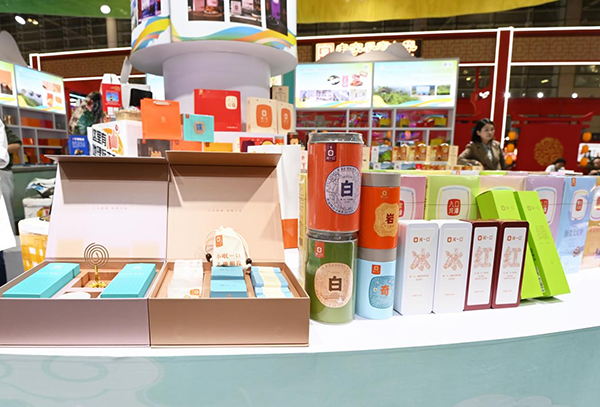 农好康(福建)数字科技公司推出的伴手礼礼盒,融合香条、陶瓷与茉莉花茶,造型精美、文化味浓,吸引不少观众选购。据该公司代表介绍,“农好康”通过建立标准体系,联农带农,与全省超三千家食品加工厂合作,打造了“闽一口”食品品牌,推动更多地方地理标志产品走出乡村,成为代表福建特色的精致伴手礼。