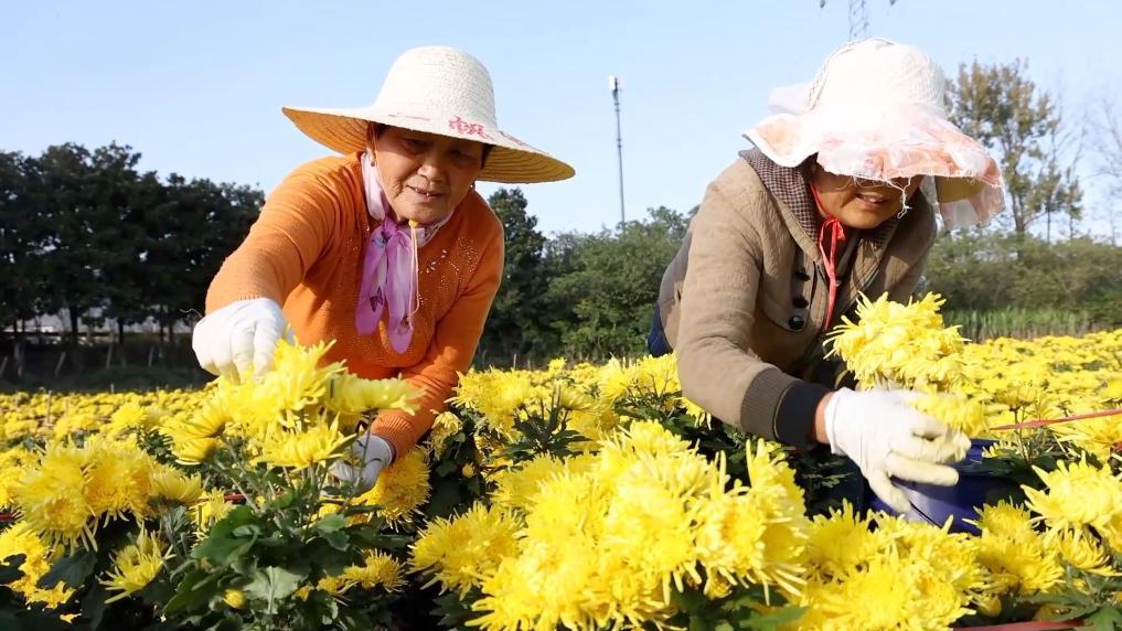 近日,江苏省句容市边城镇金丝皇菊和大皇菊迎来采收期,成为当地特色农业的亮丽名片。放眼望去,一朵朵金灿灿的菊花开满田间,菊农们正在采摘菊花,一片丰收景象。
