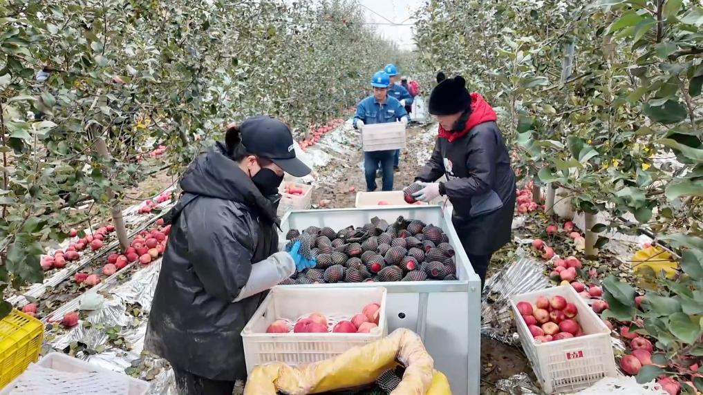初冬时节,陕西省长武县22.5万亩苹果集中采收进入尾声,果农们加快采摘,果园内一片繁忙景象。