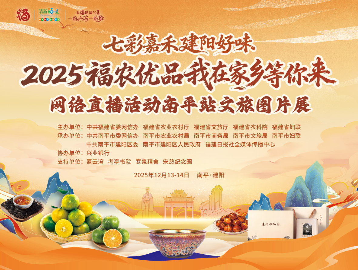 12月12日至14日,2025“福农优品·我在家乡等你来”网络直播活动南平站暨建阳桔柚嘉年华将走进朱子故里——南平建阳,把山水间的好物都为你打包呈现!