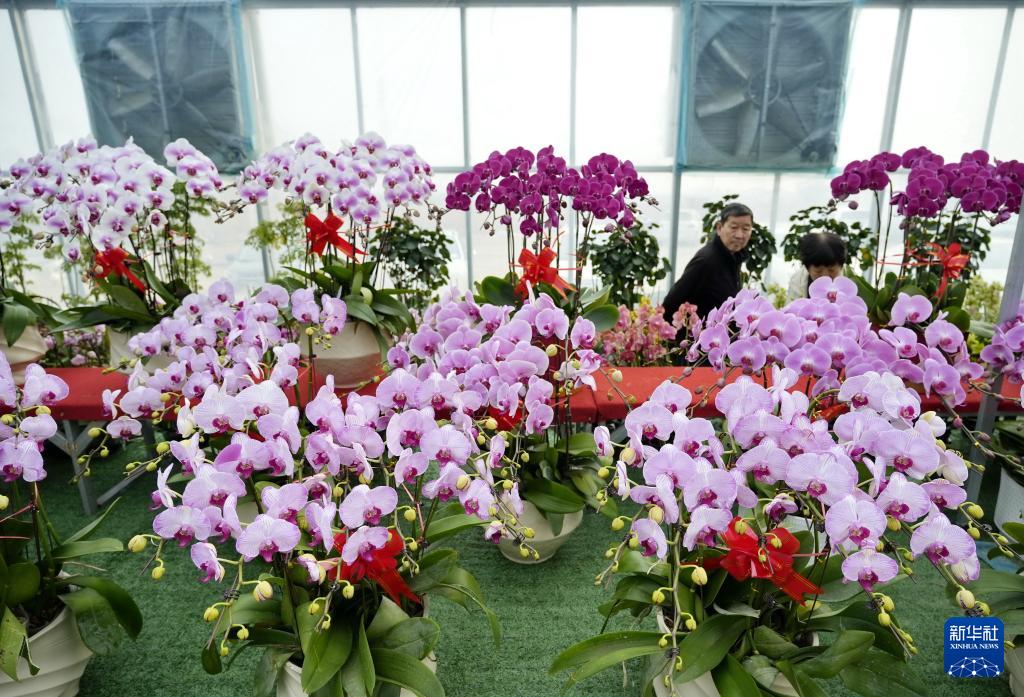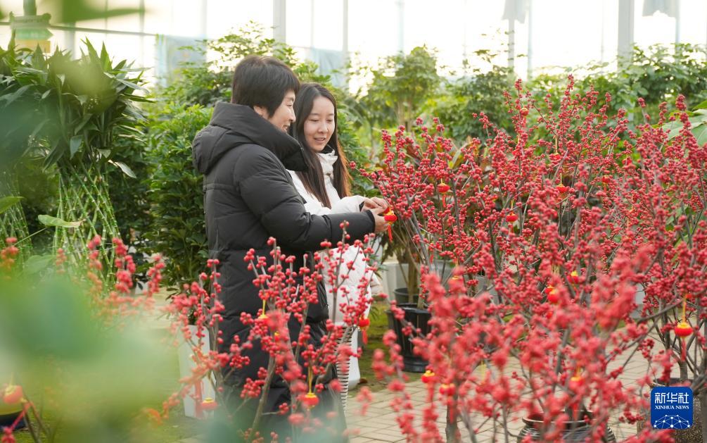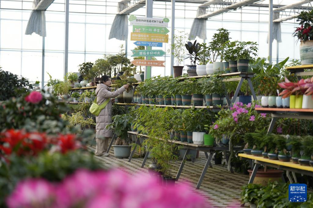 1月15日,市民在河北省滦州市一家花卉生产基地温室内挑选绿植。