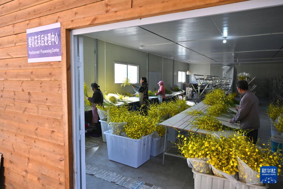 1月15日,在位于周宁县浦源镇的福建馨慧兰园艺有限公司,工人分拣包装文心兰。