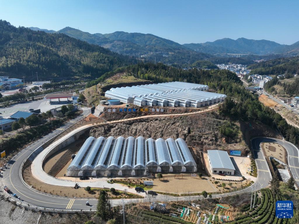 这是1月15日拍摄的周宁县七步镇花卉企业大棚(无人机照片)。