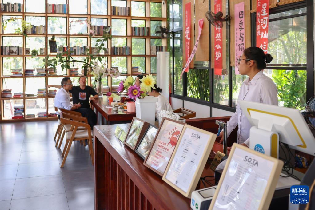 1月27日,顾客在海南定安县富文镇的九所会客厅水塔咖啡馆里点单。
