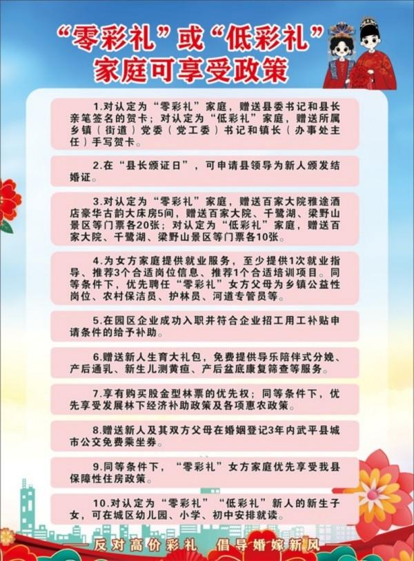武平县出台“零彩礼”或“低彩礼”家庭可享受政策