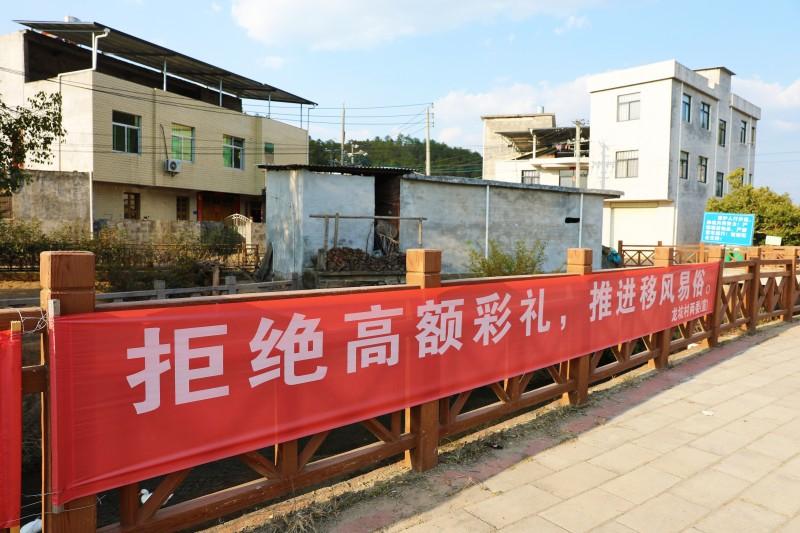 龙坑村推动婚俗新风尚的标语。记者 傅心婕 摄