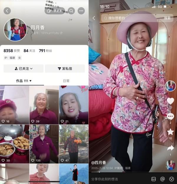 “宝藏阿婆”蓝香秀(抖音号“四月香”)用即兴方言“rap”宣传低价彩礼