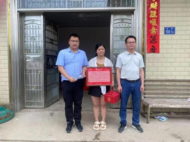 大禾镇相关负责人向“零彩礼”代表、新娘蓝珍送上新婚“大礼包”。武平县大禾镇政府 供图