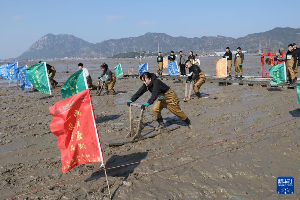 2月8日,一场滩涂“木泥马”挑战赛在福建省霞浦县冬瓜山赶海基地举行,选手们用传统赶海工具“木泥马”(又称“泥橇”)在滩涂上接力滑行、奋勇争先,以别样方式迎接马年春节。“木泥马”这一传统渔具如今变身地方特色文旅项目,成为游客赶海新玩法。同时,霞浦县宏昌工业文创基地内的跑马场和马文化美术展也随春节临近热度攀升,吸引游客参观、体验。