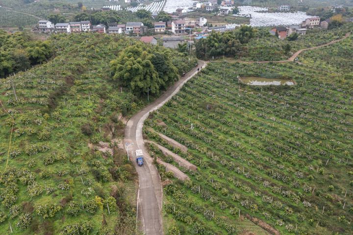 在重庆市忠县新立镇双柏村,满载爱媛橙的车辆行驶在果园内。本组图片均为新华社记者 黄伟 摄
