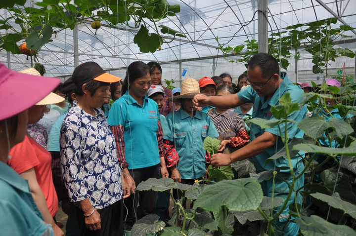 井冈山高科技农业博览园内正开展蔬菜种植培训。