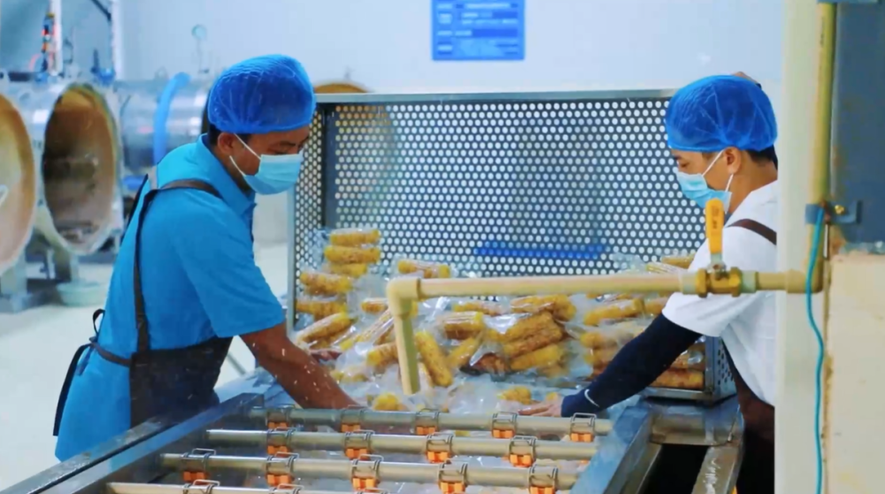 眼下正是鲜食玉米上市旺季。从地里采摘的新鲜玉米,被装车运往公司的绿色农产品加工产业园。在这里,玉米经过打冷降温、抽测检验、高温蒸煮、分拣等工序,最终被装进一个个高阻隔食品级包装袋,并贴上一个显眼的二维码。