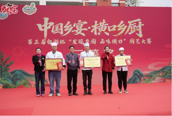 当天的“白濑杯”厨艺大赛,聚焦“养生”主题,吸引了众多乡厨同台竞技。比赛采用开放式厨房与专业评审相结合的方式,最终评选出一、二、三等奖及优秀奖共11名。大赛不仅展现了乡厨们精湛的技艺,也凸显了横口本地草根、养脾散、熟地、茶油等药膳食材的健康价值。