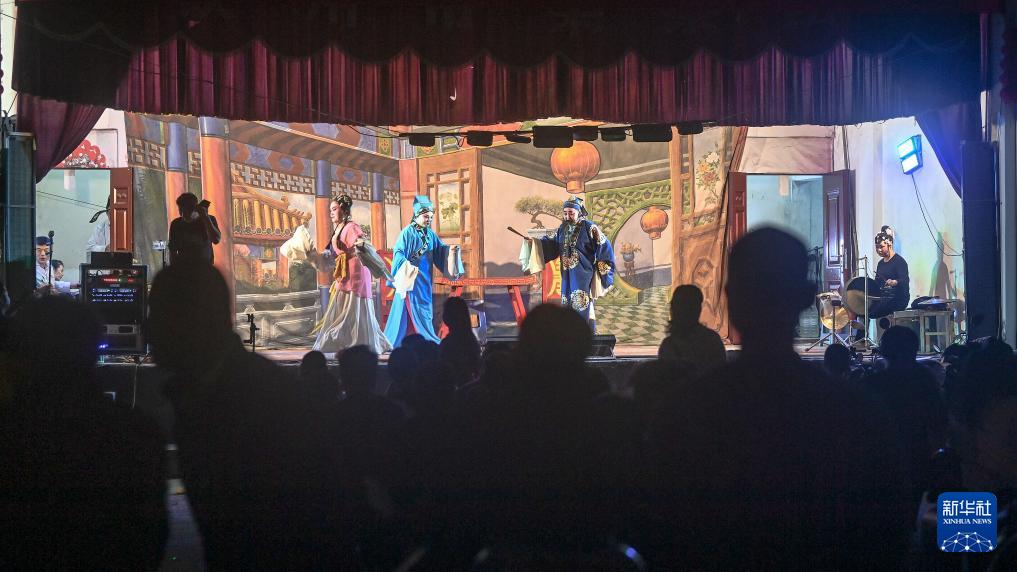 2月22日,在广西钦州市刘永福广场,民间艺人在表演采茶戏。