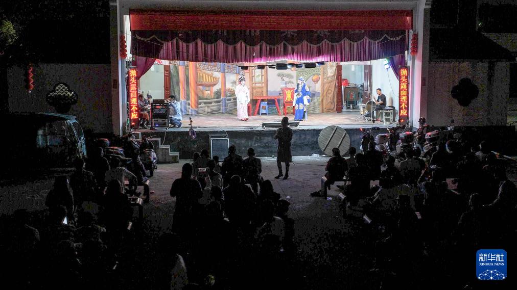 2月22日,在广西钦州市刘永福广场,市民在观看采茶戏(无人机照片)。