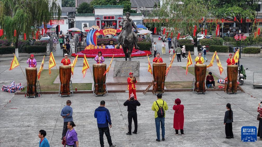 春节期间,在广西钦州市刘永福广场,轮番展演的新春采茶戏和烟墩大鼓“击鼓迎春”等活动,让传统文化的韵味飘香,丰富了群众的春节文化生活。