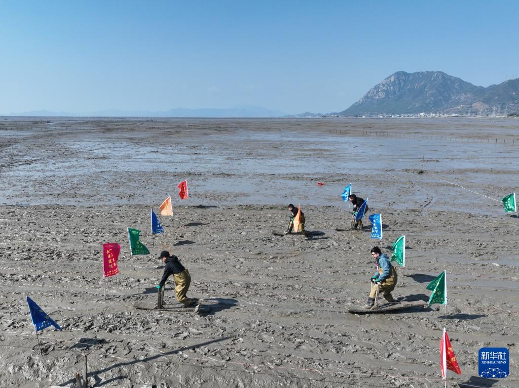 2月8日,一场滩涂“木泥马”挑战赛在福建省霞浦县冬瓜山赶海基地举行,选手们用传统赶海工具“木泥马”(又称“泥橇”)在滩涂上接力滑行、奋勇争先,以别样方式迎接马年春节。“木泥马”这一传统渔具如今变身地方特色文旅项目,成为游客赶海新玩法。同时,霞浦县宏昌工业文创基地内的跑马场和马文化美术展也随春节临近热度攀升,吸引游客参观、体验。