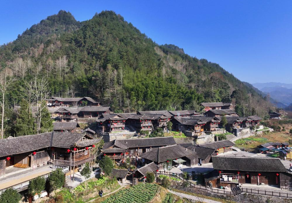 彭家寨吊脚楼群(无人机照片)。新华社发(陈绪开 摄)
