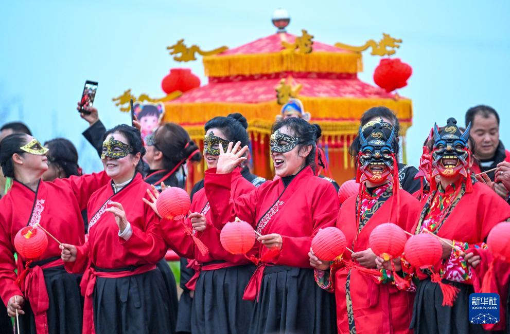 3月2日,人们观看非遗民俗活动表演。