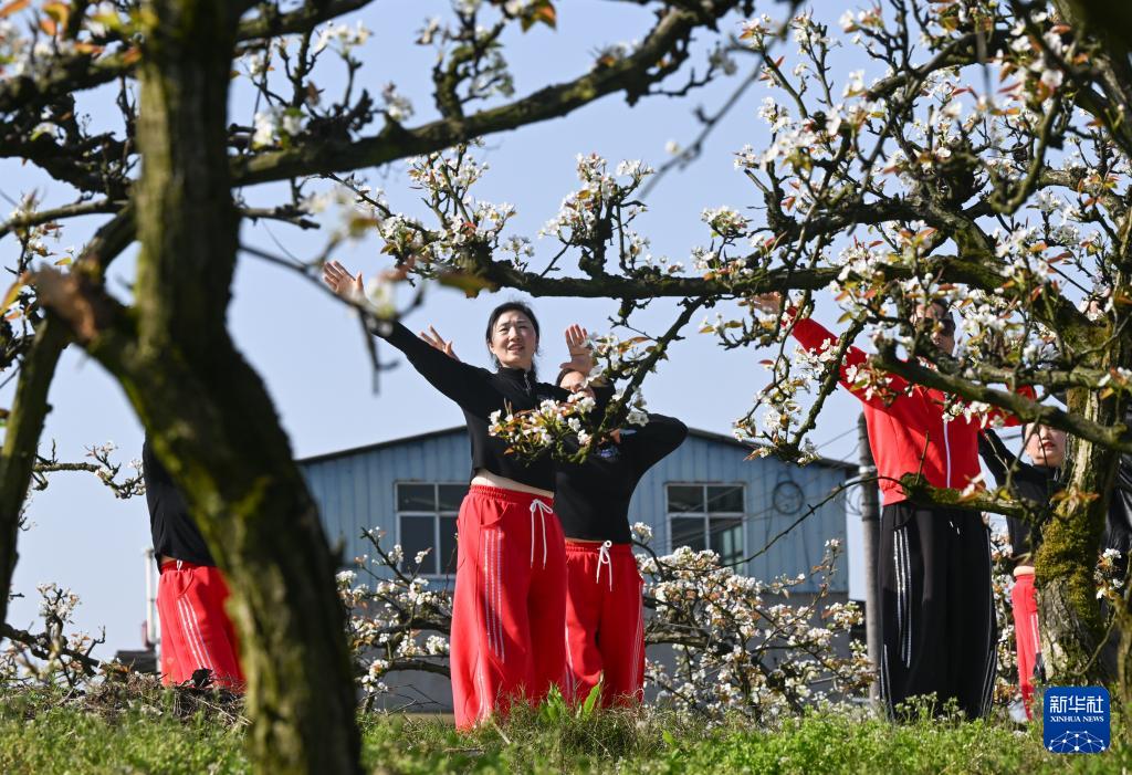 3月11日,村民在重庆市永川区尖山村给梨花进行人工授粉。