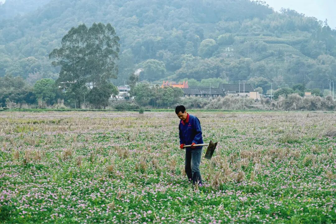 3月23日,宁德市蕉城县霍童镇春耕现场,紫云英连片盛开。(图源:蕉城县融媒体中心)