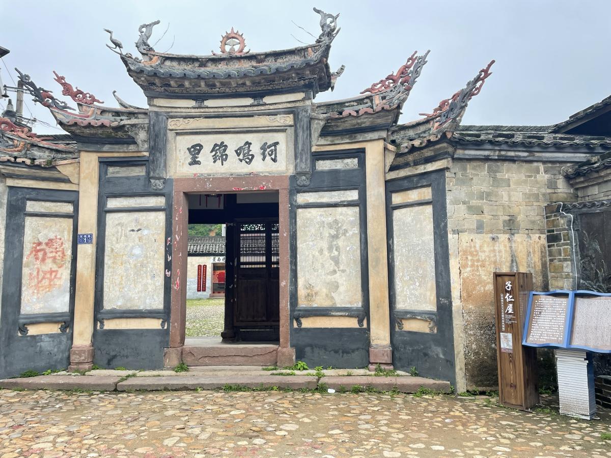 ——子仁屋:一幢明清住宅和书坊合二为一的典型建筑。门楼有火圈、鳌鱼和白鹤等雕塑,飞檐翘角,门顶正中写有“珂鸣锦里”四个苍劲大字,无不显示庄重豪华,是四堡具有代表性的古书坊之一。