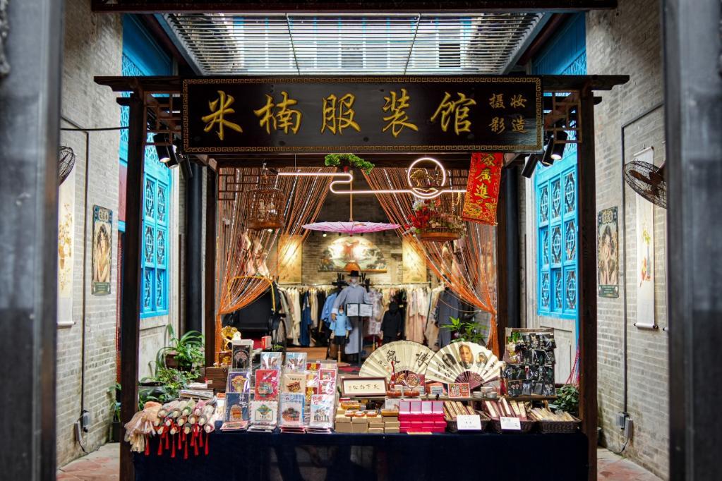 翠亨村内开设的摄影工作室“米楠服装馆”。新华社发
