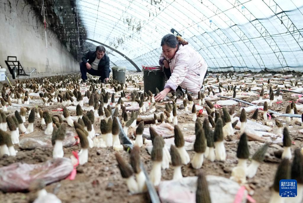 近日,河北省迁安市上射雁庄镇食用菌种植基地的羊肚菌进入采摘期,农民忙着采摘,供应市场。近年来,该市引导农民采取“合作社+基地+农户”的模式,规模化发展羊肚菌、赤松茸、香菇等食用菌种植,促进农民增收,助力乡村振兴。